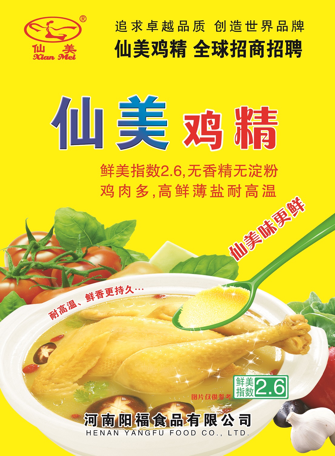 2018-03-05|閱讀數(shù):512仙美雞精,全球招商招聘!鮮美指數(shù)2.6,無(wú)香精無(wú)淀粉、雞肉多、高鮮薄鹽耐高溫!追求卓越品質(zhì),創(chuàng)造世界名牌!河南陽(yáng)福食品有限公司 歡迎您! -